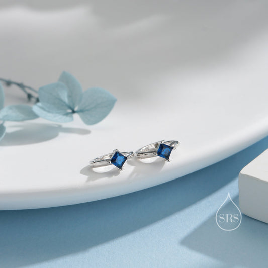 Single Sapphire Blue CZ Crystal Huggie Hoop in Sterling Silver, Silver or Gold, Minimalist Simple Hoop Earrings