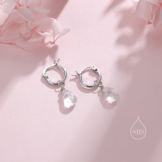 Natural Faceted Crystal Huggie Hoop Earrings in Sterling Silver, Available in Three Stones, Aventurine Jade, Black Onyx and Clear Quartz
