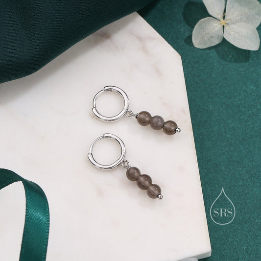 Genuine Smoky Quartz Stone Trio Huggie Hoop Earrings in Sterling Silver, Whisky Quartz Cluster Dangle Earrings, Three Stone Hoops