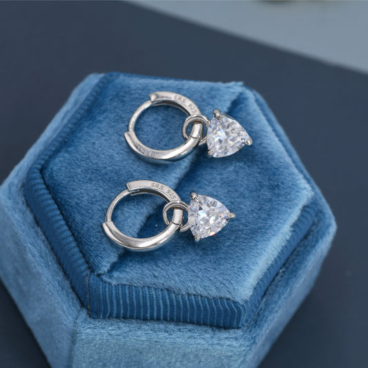 Sterling Silver Trillion Cut CZ Hoop Earrings, Silver, Gold or Rose Gold, Triangle Dangle Hoop Earrings, Interchangeable Charms