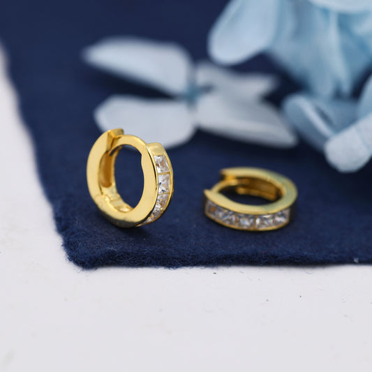 3mm CZ Huggie Hoop in Sterling Silver, Silver or Gold, 7mm Inner Diameter Hoop Earrings, May Birthstone, Princess Cut, Square CZ Hoops