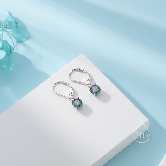 Mystic Black CZ Lever Back Hoop in Sterling Silver, 2 Sizes Available, 6mm or 6.5mm, Minimalist Simple Crystal Leverback Hoop Earrings