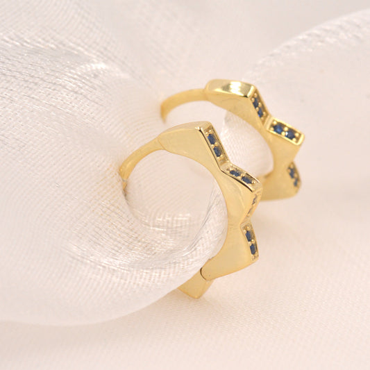 Sapphire CZ Flower Huggie Hoops, CZ Hoop Earrings, Crystal Flower Huggie Earrings, Blue Crystal Hoop Earrings