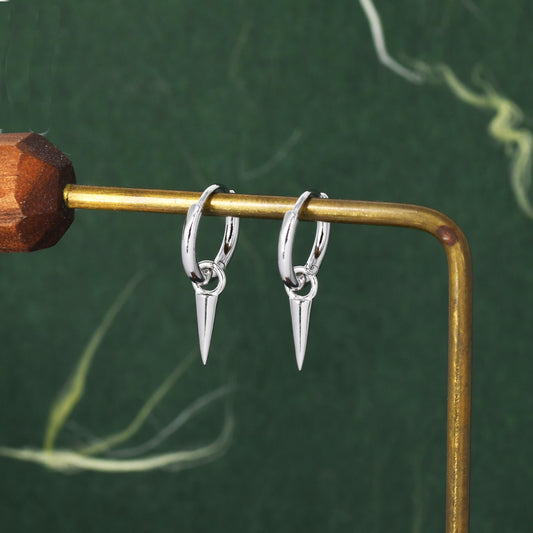 Sterling Silver Dainty Spike Hoop Earrings, Detachable Spike Charm Dangle Hoop Earrings, Silver or Gold or Rose Gold or Black