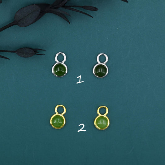 Natural Jasper Jade Charms for Huggie Hoops, Sterling Silver Round Circle Jade Charms for Earrings, Detachable, Silver or Gold
