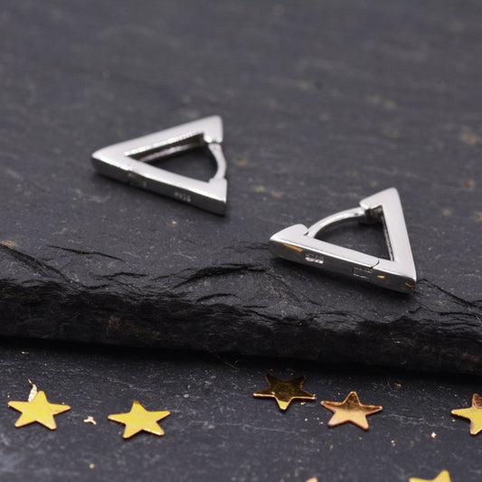 Sterling Silver Triangle Huggie Hoop Earrings, Geometric Design, Classic and Elegant Jewellery