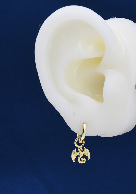 Tiny Dragon Huggie Hoop in Sterling Silver, Silver or Gold or Rose Gold, Dagon Dangle Hoop Earrings, Detachable and Interchangeable