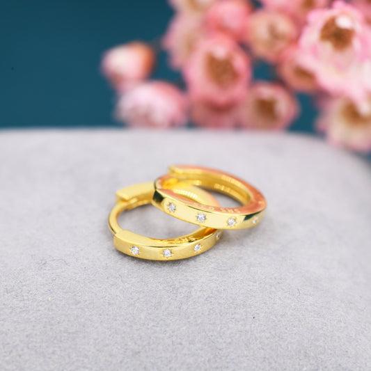 Skinny CZ Huggie Hoops in Sterling Silver, Silver or Gold, Minimalist Hoop Earrings, 6mm, 7mm,8mm, 9mm,10mm Hoops, cartilage hoops