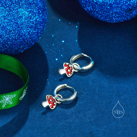 Dangling Mushroom Huggie Hoops in Sterling Silver, Silver or Gold , Mushroom Huggies, Mushroom Earrings, Detachable and Interchangeable