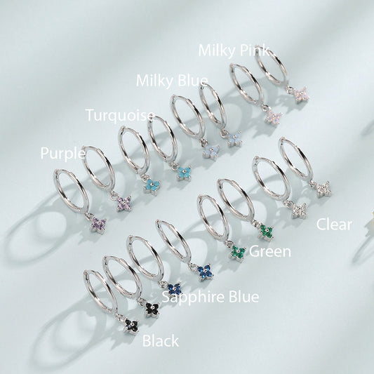 Extra Tiny Hydrangea Flower CZ Huggie Hoop Earrings in Sterling Silver, Silver or Gold, Green, Blue, Pink, Purple or Clear CZ