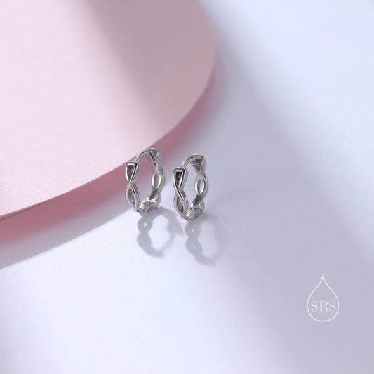 Sterling Silver Dainty Braided Huggie Hoops, Twist Hoops, Intertwining Hoop Earrings, Dainty Huggie Hoops Earrings, Mobius Hoops