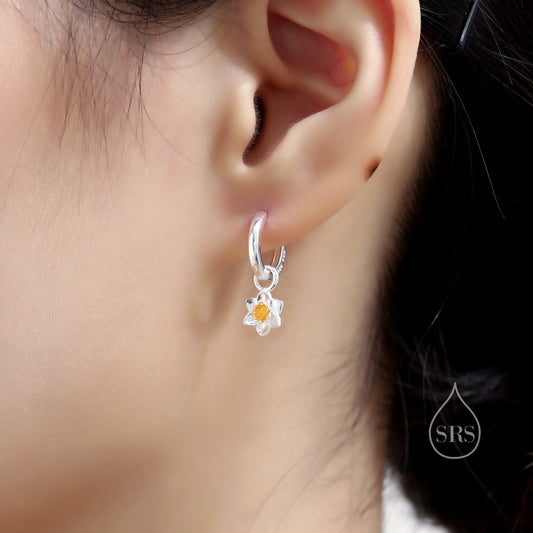 Daffodil Huggie Hoop in Sterling Silver, Partial Gold, Flower hoop Earrings, Daffodil Floral Earrings, 8mm Inner Diameter