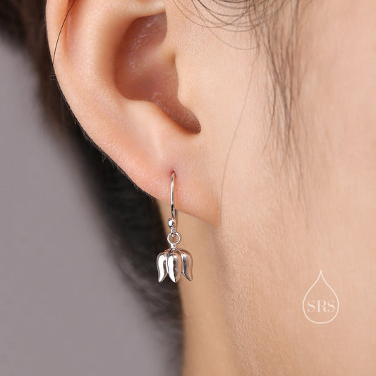 Lily of the valley Dangle Hook Earrings in Sterling Silver, Lily of the Valley Flower Dangle Earrings