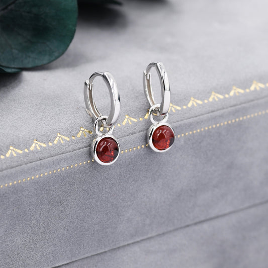 Sterling Silver Dangling Red Garnet Hoop Earrings, Detachable Genuine Garnet Coin Dangle Hoop Earrings, Silver, Interchangeable