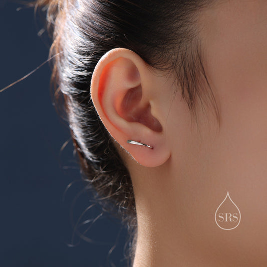 Minimalist Bar Crawler Earrings in Sterling Silver, Silver or Gold or Rose Gold, Minimalist Geometric Earrings, Wave Ear Climbers