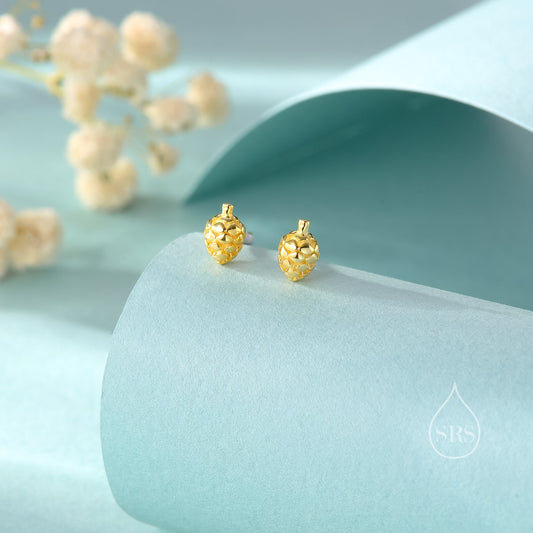 Pine Cone Stud Earrings in Sterling Silver, Silver or Gold, Tiny Pinecone Stud Earrings, Nature Inspired, Stacking Earrings