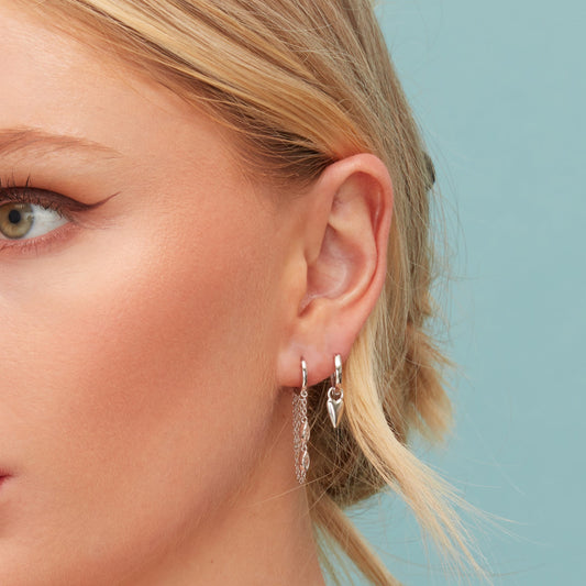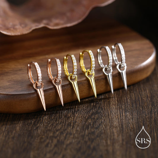 Sterling Silver Delicate Spike Hoop Earrings, Detachable Charm Dangle Hoop Earrings, Silver or Gold or Rose Gold or Black, Interchangeable