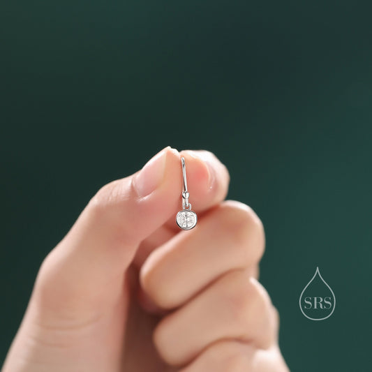 Tiny and Minimalist 4mm CZ Drop Earrings in Sterling Silver, Cubic Zirconia Hook Earrings, Silver, Gold or Rose Gold, Minimal Earrings