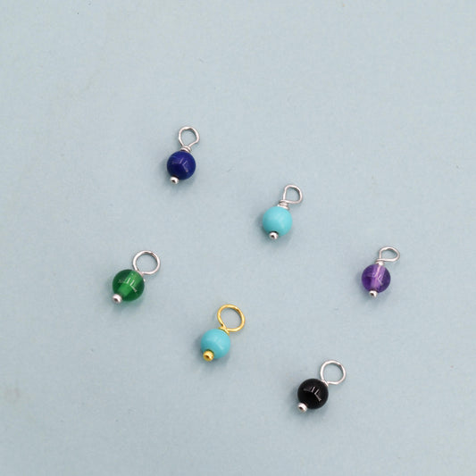 4mm Natural Semi-Precious Gemstones Charms for Huggie Hoops in Sterling Silver, Sold as a Pair, Charms for Earrings, Silver or Gold,