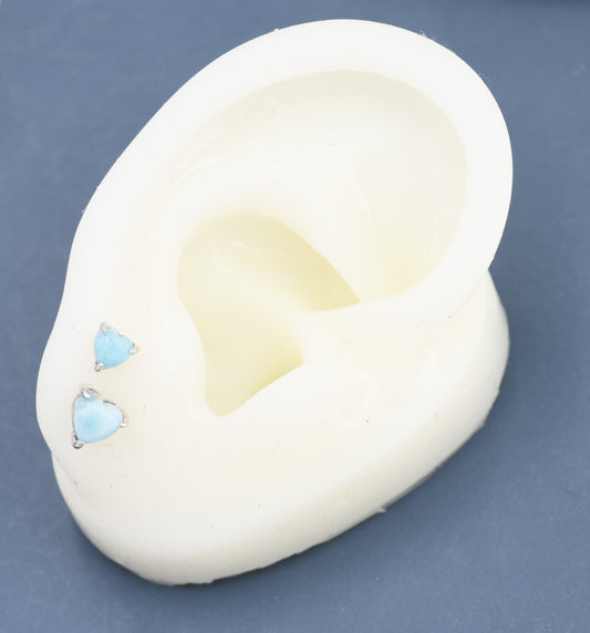 Genuine Larimar Stone Heart Stud Earrings in Sterling Silver, 4mm or 5mm Natural Larimar Heart Stud Earrings, Tiny Heart Earrings