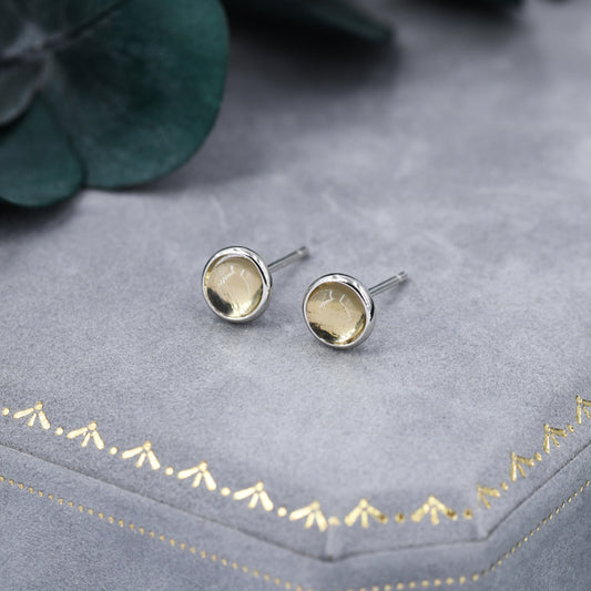 Natural Citrine Crystal Stud Earrings in Sterling Silver - 6mm - Genuine Yellow Citrine Crystal Stud Earrings - Semi Precious Gemstone