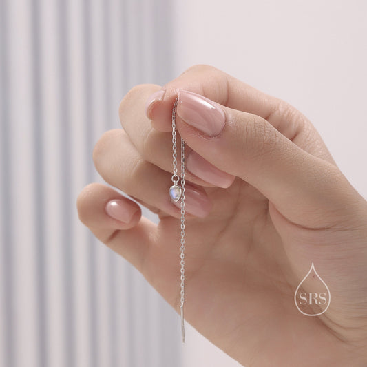 Moonstone Droplet Long Threader Earrings in Sterling Silver, 3x4mm Lab Moonstone Pear Shape Ear Threaders, Silver or Gold or Rosegold