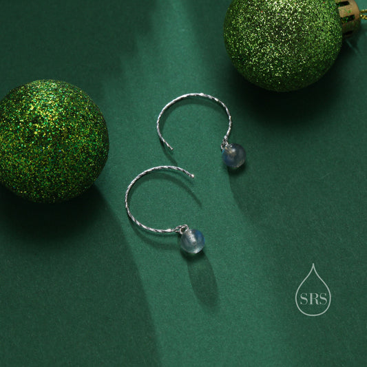Genuine Labradorite Dangle Earrings in Sterling Silver, 15mm Hook Earrings, Round Hoop Labradorite Beaded Earrings