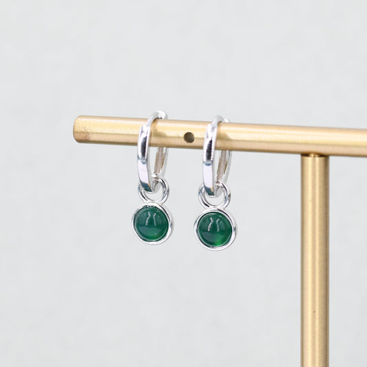 Sterling Silver Dangling Green Onyx Hoop Earrings, Detachable Green Onyx Coin Dangle Hoop Earrings, Silver or Gold, Interchangeable