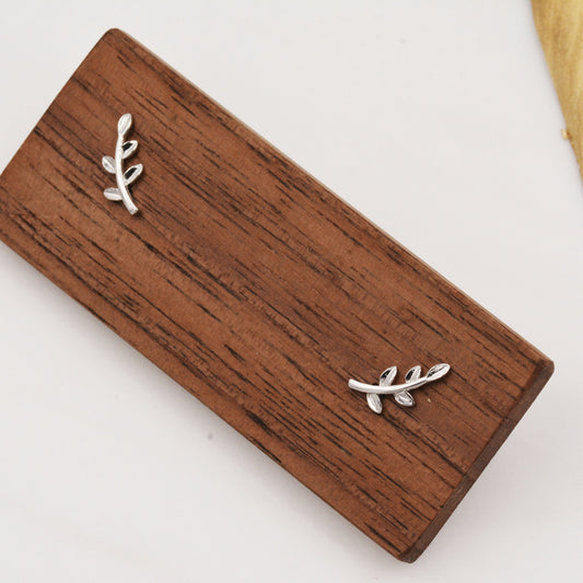 Leaf Stud Earrings in Sterling Silver - Tree Branch Stud Earrings - Olive Branch - Cute, Fun, Whimsical