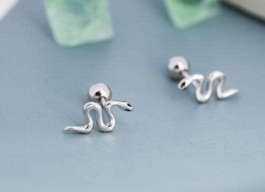 Snake Screw Back Earrings in Sterling Silver - Gold or Silver - Sold as a Pair - Snake Barbel Earrings