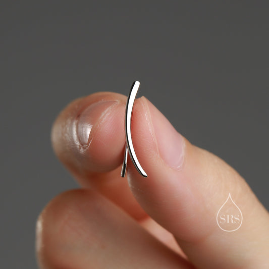 Minimalist Curved Bar Crawler Earrings in Sterling Silver, Silver or Gold or Rose Gold, Minimalist Geometric, Wave Ear Climbers