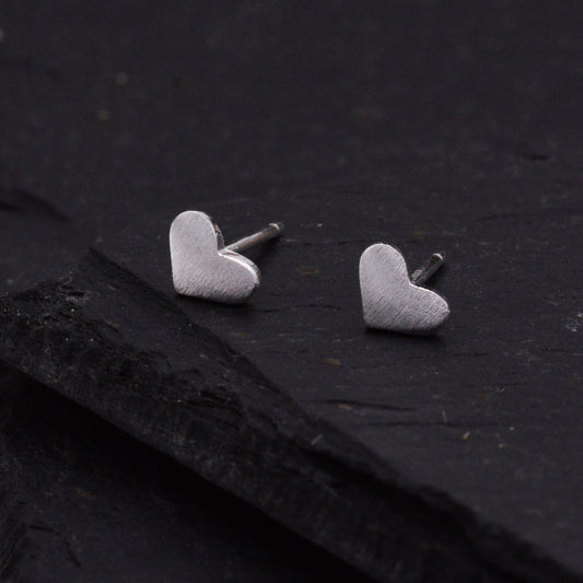 Sterling Silver Simple Little Heart Stud Earrings with Textured Finish, Minimalist Geometric Jewellery, Modern Contemporary Design