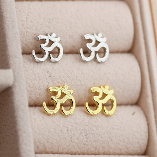 Om Stud Earrings in Sterling Silver, Silver or Gold, Buddhist Earrings, Meditation Earrings, Yoga Earrings