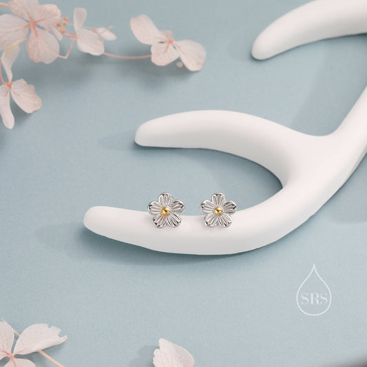 Tiny Forget Me Not Flower Stud Earrings in Sterling Silver, Tiny Flower Earrings, Small Daisy Earrings, Forget-me-not Stud