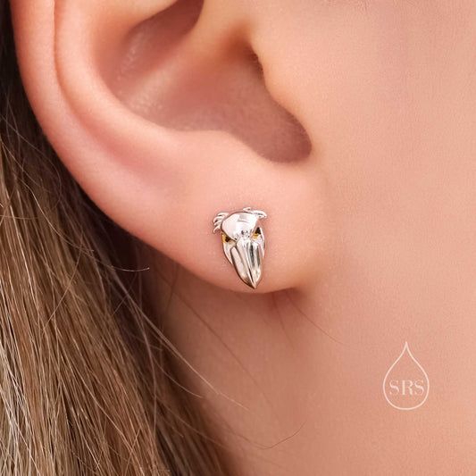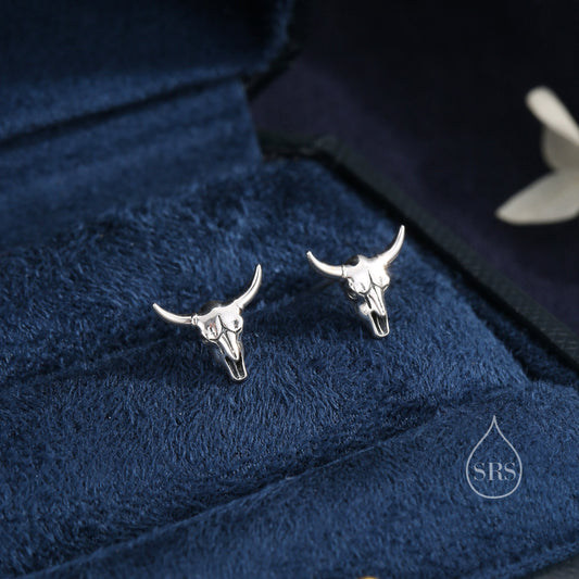 Sterling Silver Tiny Bull Skull Stud Earrings, Silver or Gold or Rose Gold, Bull Skeleton Earrings in Sterling Silver