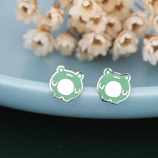 Cute Enamel Frog Stud Earrings in Sterling Silver, Kawaii Frog Earrings, Forest Frog Nature Inspired