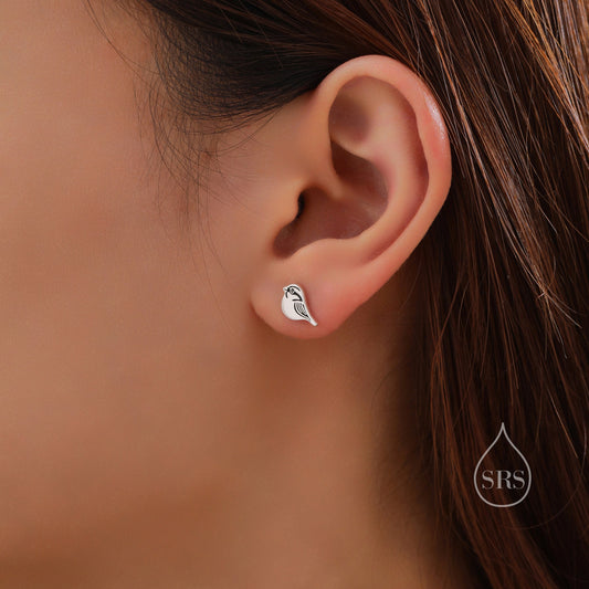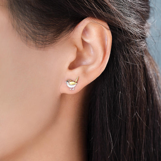 Sterling Silver Tiny Wren Bird Stud Earrings Earrings, Silver Wren Earrings, Cute Sparrow Earrings