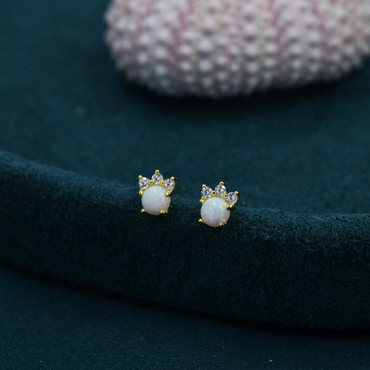 Tiny White Opal with CZ Stud Earrings in Sterling Silver, Silver or Gold, Vintage Inspired Design, Opal Crown Earrings Crown Stud