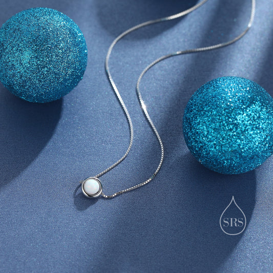 Tiny White Opal Planet Pendant Necklace in Sterling Silver, Beaded Opal Halo Necklace, Space Necklace