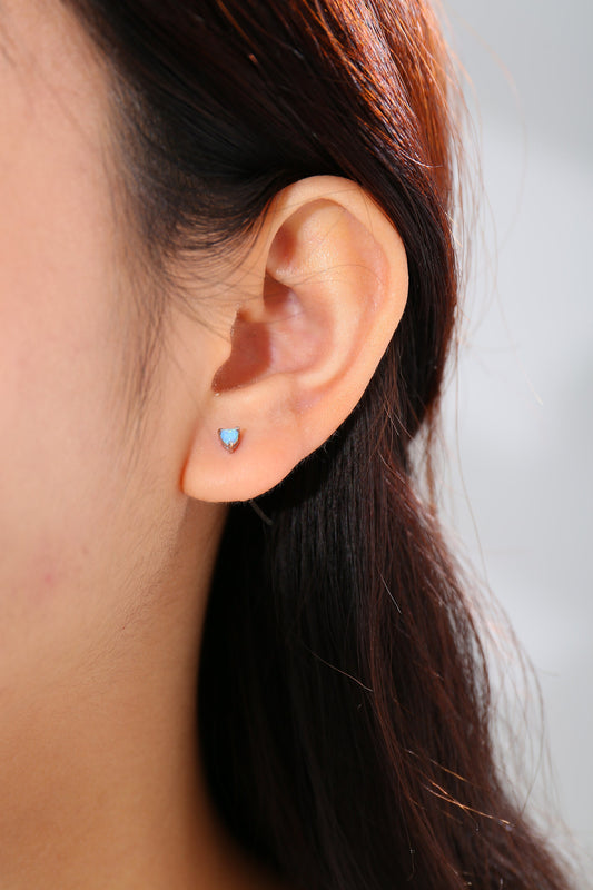 Extra Tiny White Opal Heart Stud Earrings in Sterling Silver - 3mm Fire Opal - Sustainable Lab Opal - Petite Stud Earrings