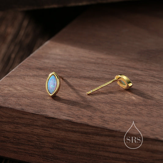 Sterling Silver Blue Opal Marquise Stud Earrings, 3x6mm Marquise Stud, Lab Blue Opal Tiny Earrings, Gold or Silver, Minimalist