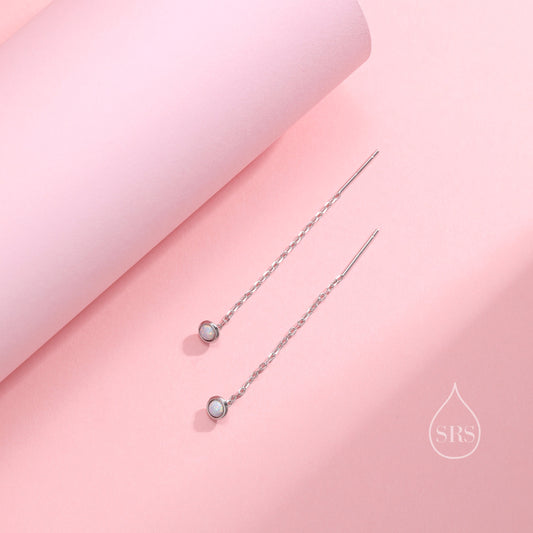 4mm White Opal Dot Threader Earrings in Sterling Silver, Lab Opal Ear Threaders, Silver or Gold, Opal Threaders, Chain Earrings