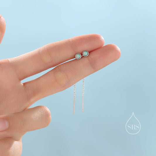 4mm Aqua Green Opal Dot Threader Earrings in Sterling Silver, Lab Opal Ear Threaders, Silver or Gold, Opal Threaders, Chain Earrings