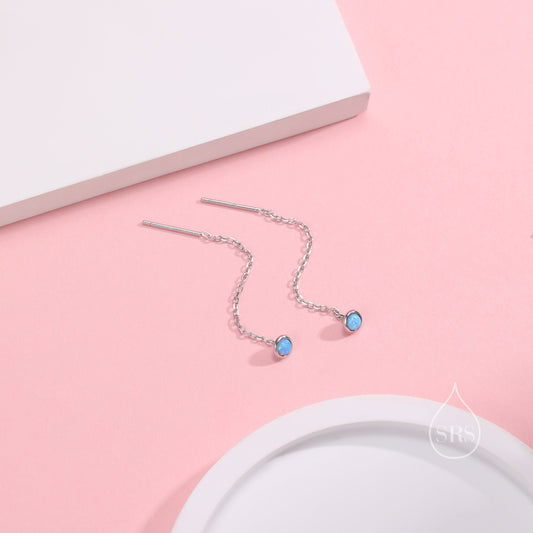 4mm Blue Opal Dot Threader Earrings in Sterling Silver, Lab Opal Ear Threaders, Silver or Gold, Opal Threaders, Chain Earrings