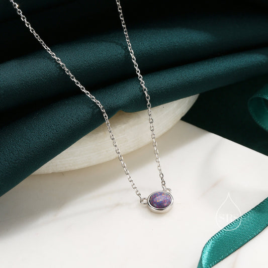 Sterling Silver Cosmic Purple Opal Dainty Coin Pendant Necklace - Delicate Crystal Coin Necklace