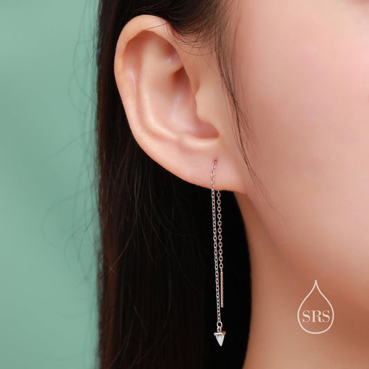 Tiny Opal Spike Threader Earrings in Sterling Silver, Opal Ear Threaders, Opal Earrings, Blue or White Opal, Ear Threaders