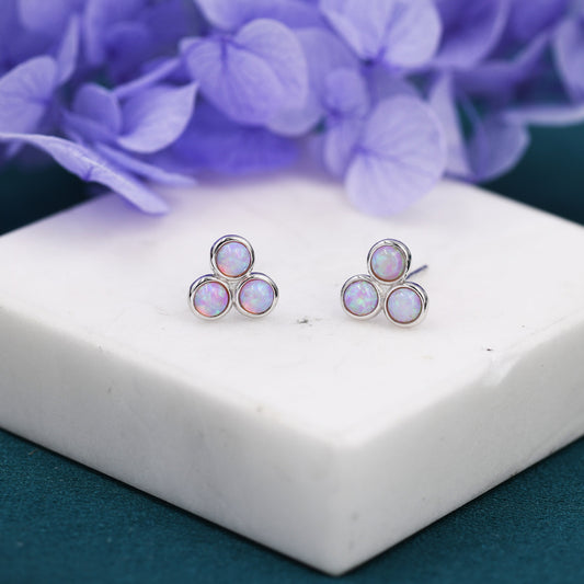 Cosmic Dust Pink Opal Dot Circle Stud Earrings in Sterling Silver - Silver or Gold - Fire Opal Trio Earrings, Three Opals