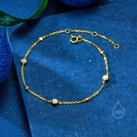 Delicate Opal Bracelet in Sterling Silver, Available in Blue Opal or White Opal, Silver or Gold, Silver Opal Bracelet