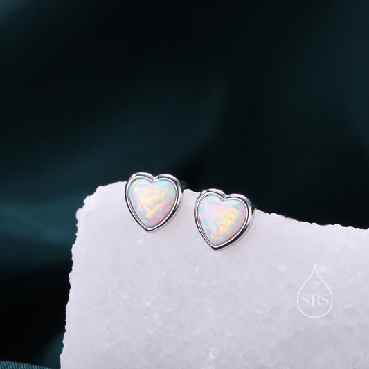 White Opal Heart Screw back / Flat Back / Stud Earrings in Sterling Silver, Lab Opal Heart Earrings, Heart Screwback Earrings, Fire Opal