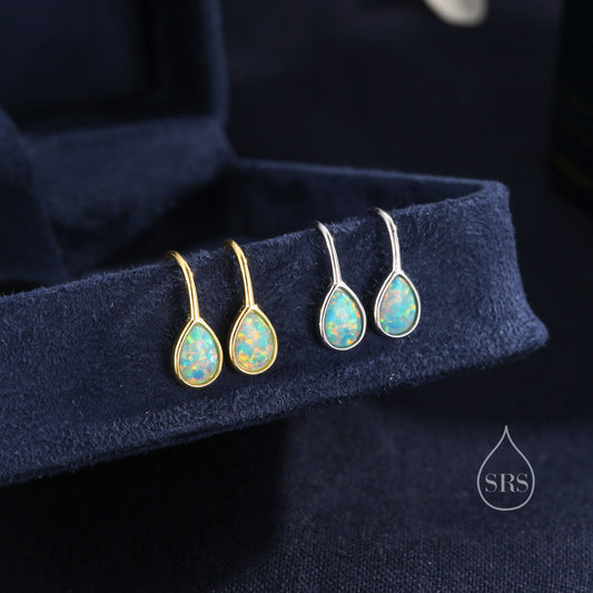 Green Opal Droplet Drop Hook Earrings in Sterling Silver, Droplet Opal Drop Earrings, Pear Shape Opal Earrings, Opal Dangle Earrings